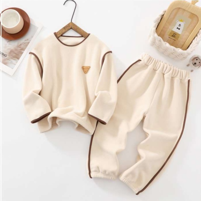 優しいベージュカラーのこちらのモコモコパジャマは、こどもの睡眠時間を快適にサポートします。