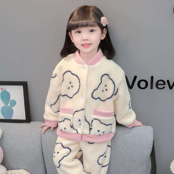 暖かいくまさん柄もこもこキッズパジャマ