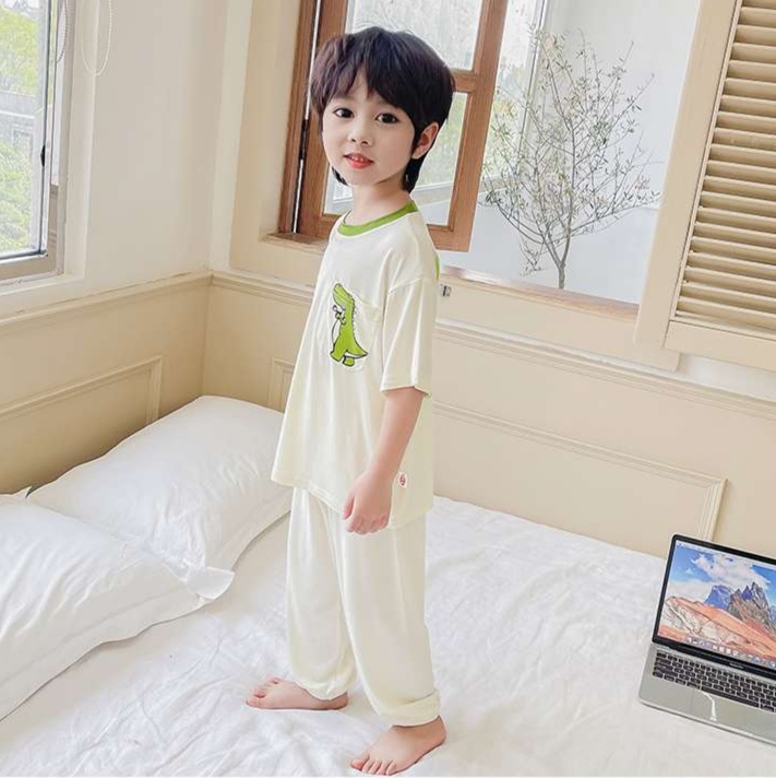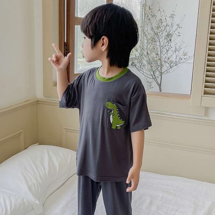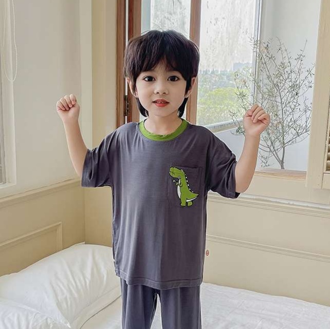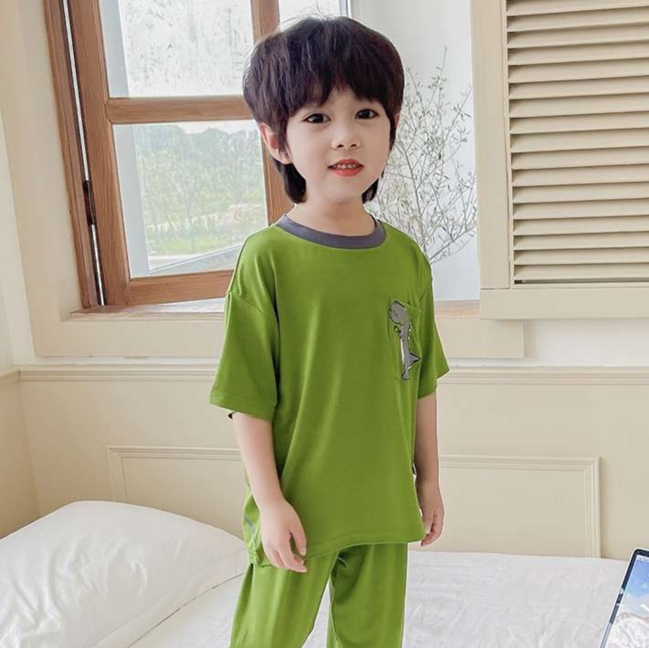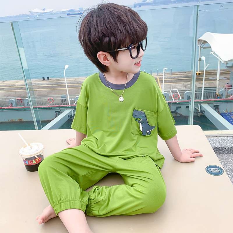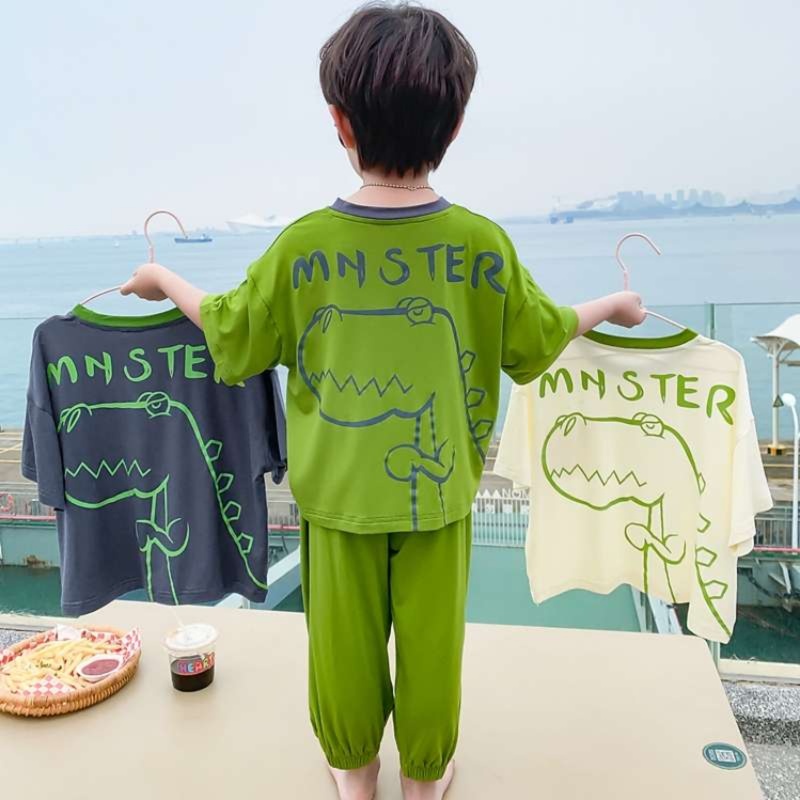夏にぴったりの男児向けキッズパジャマ。柔らかな生地で作られた快適な上下セットは、半袖トップスと七分丈パンツで涼しさをキープ。胸ポケットには愛らしい恐竜のイラストが施され、遊び心満載のデザイン。伸縮性のある素材が動きやすさを提供し、活発な男の子も大満足。おうちでのリラックスタイムやお昼寝にも最適な一着。楽しい夏の思い出をこのパジャマと共に。