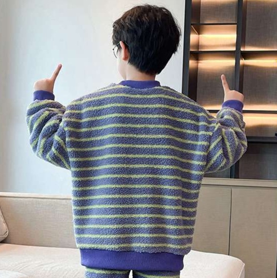 寒い冬の夜にぴったりな男児向けキッズパジャマ。ふわふわの肌触りが心地よく、伸縮性に優れた素材は活発な男の子をしっかりサポートします。上下セットで、リラックスタイムが一層楽しくなること間違いなし。スリッパを合わせれば、家でのくつろぎ時間が特別なひとときへと変わります。冬の寒さを忘れさせる快適さを提供する一着です。