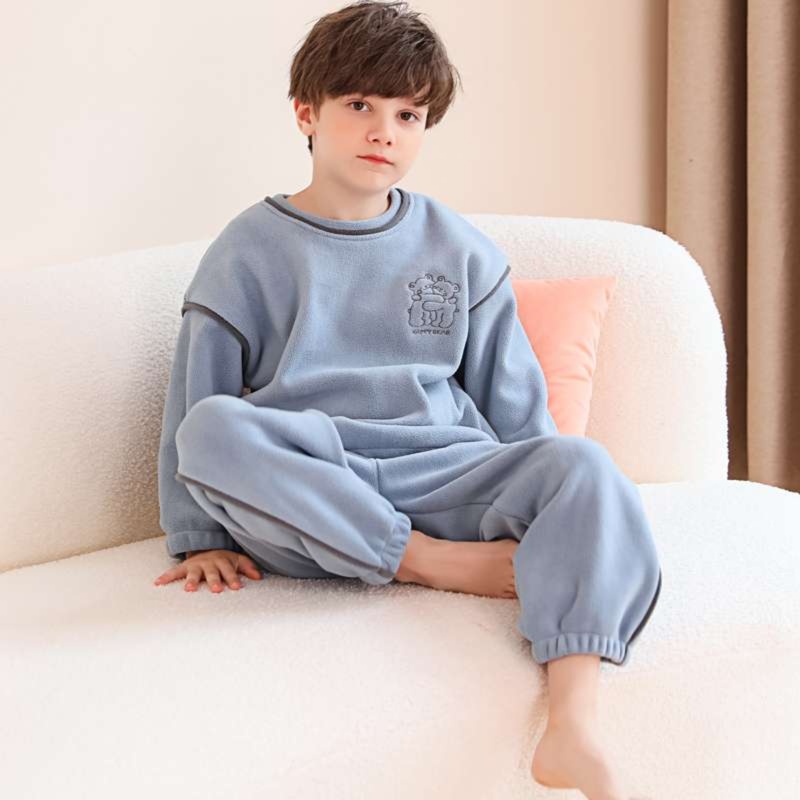 冬の夜を快適に過ごす男児向けキッズパジャマ。胸元にはかわいい動物刺繍が施され、見た目にも楽しい一着。柔らかな素材が肌に優しく、寒い季節でも心地よい眠りを提供。ゆったりとしたシルエットで動きやすく、活発な男の子にもぴったり。伸縮性に優れ、成長に合わせて長く愛用できるので、冬の定番アイテムとしておすすめです。