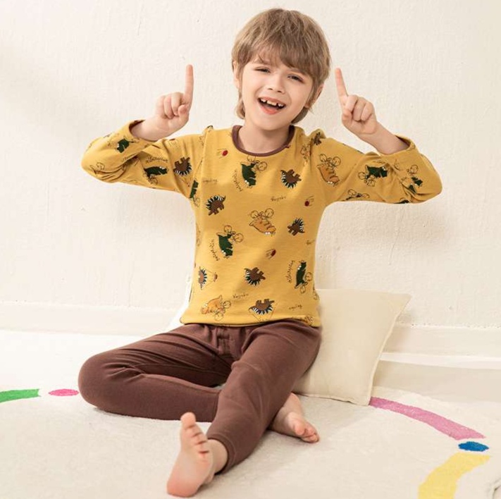 春秋にぴったりな男児向けキッズパジャマが登場。柔らかな肌触りの生地に、恐竜たちのかわいいプリントが施されています。長袖デザインで温度調節の難しい季節も心地よく、お子様が快適に眠れる環境を提供します。シンプルながら魅力的なスタイルで、伸縮性のある素材は動きやすさも兼ね備えています。おうちでのリラックスタイムを楽しく演出する、春秋の必需品です。