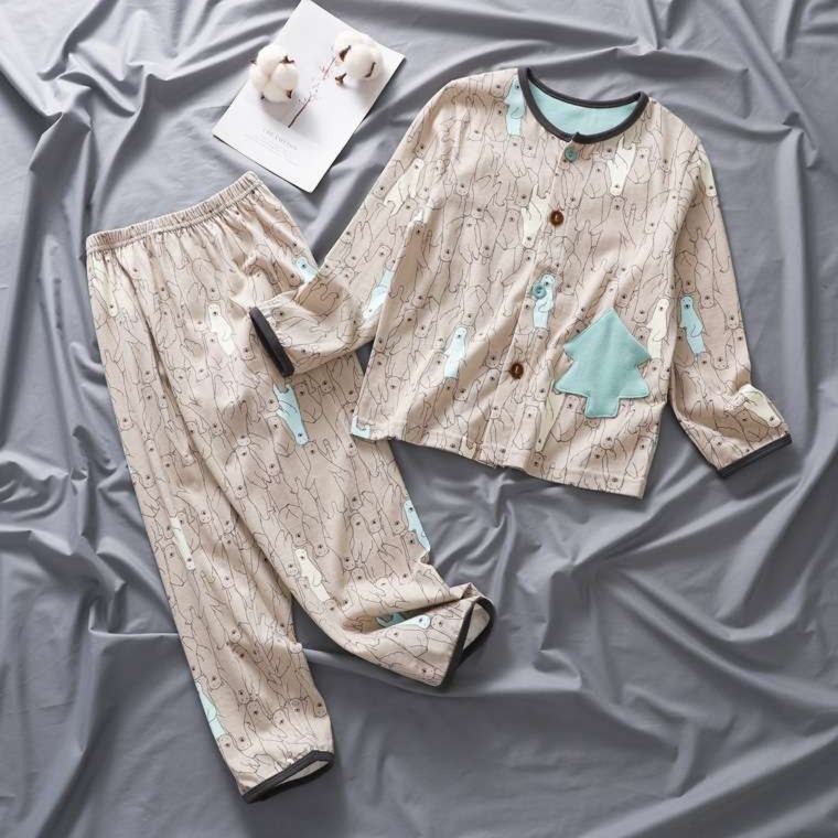 ボタン開きで着脱がしやすく、長袖長ズボンで体温調節がしやすい実用的な仕様