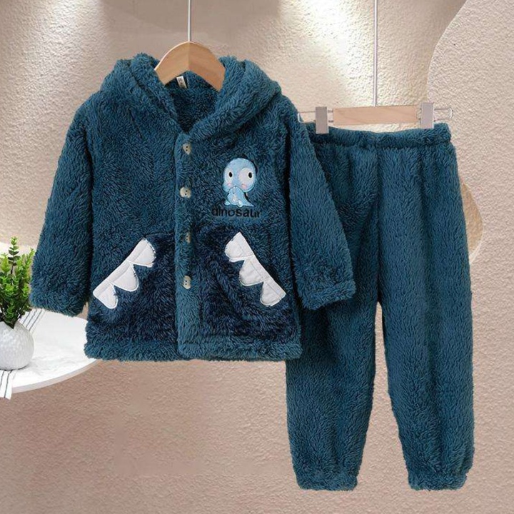 冬の夜にぴったりな子ども用パジャマ。恐竜デザインが魅力的で、男児に大人気。温かみのあるグリーンとダークブルーの2色から選べ、寒い季節でも快適な着心地を提供。お子様のぐっすり眠れるお手伝いをします。冬の夜を楽しく過ごすためのアイテムとしておすすめです。