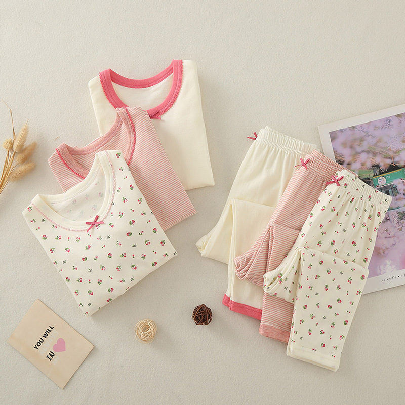 可愛らしい小花柄が全体に散りばめられた女児パジャマです。