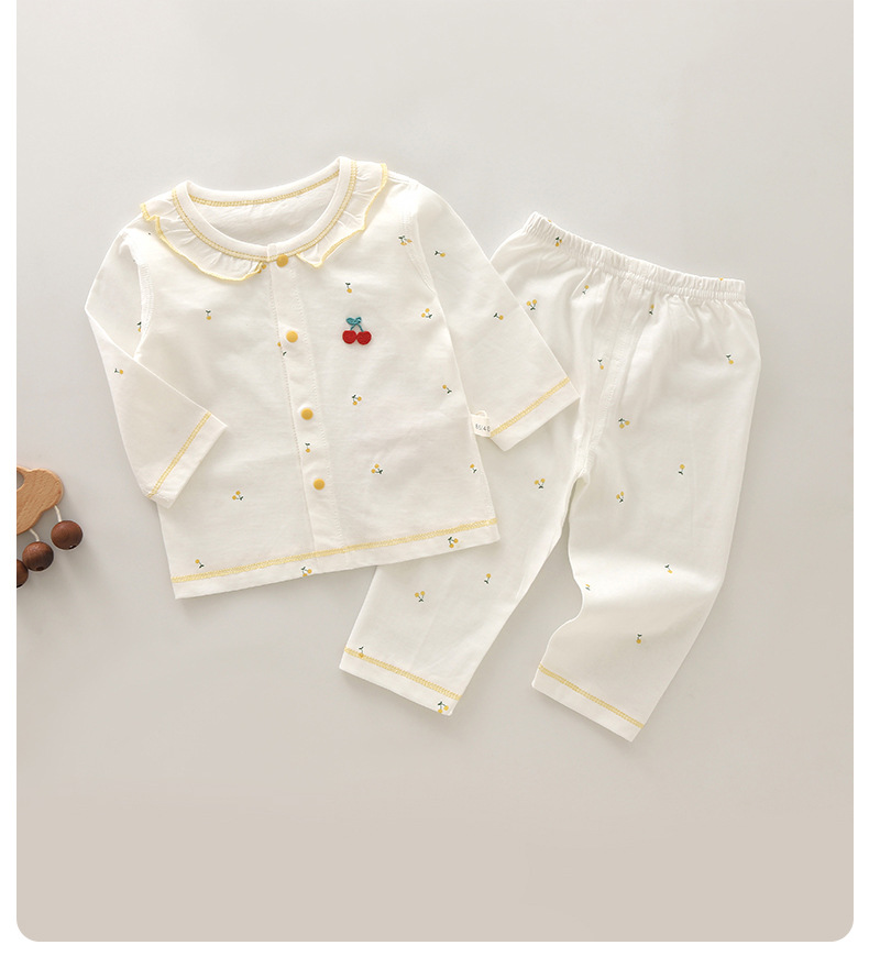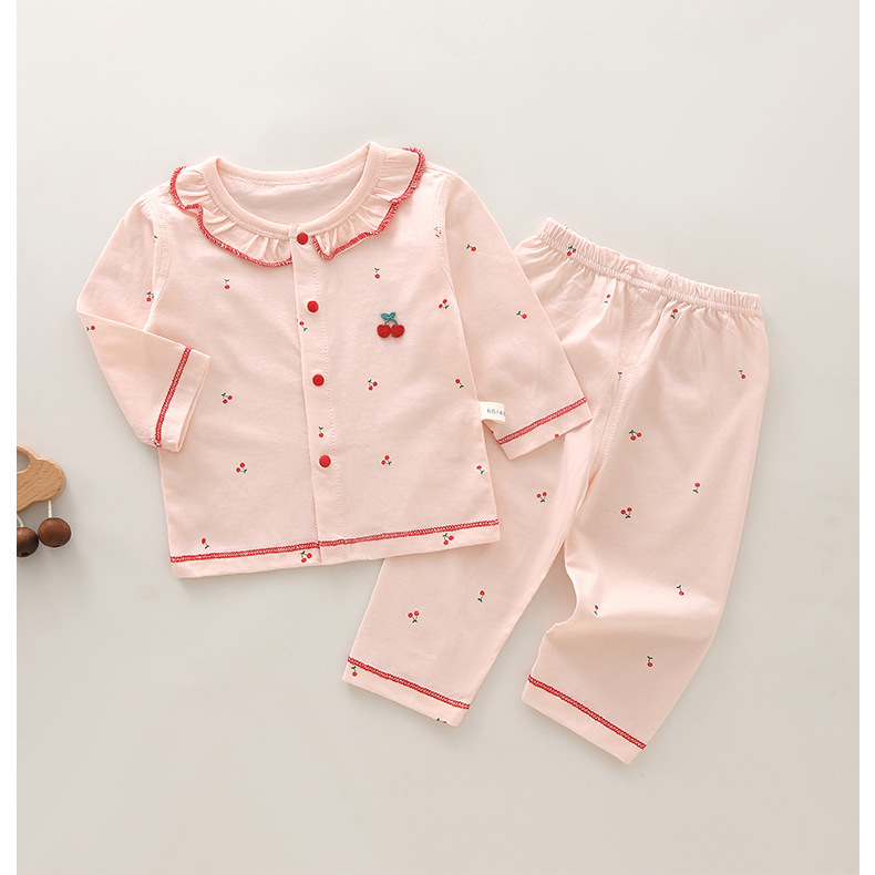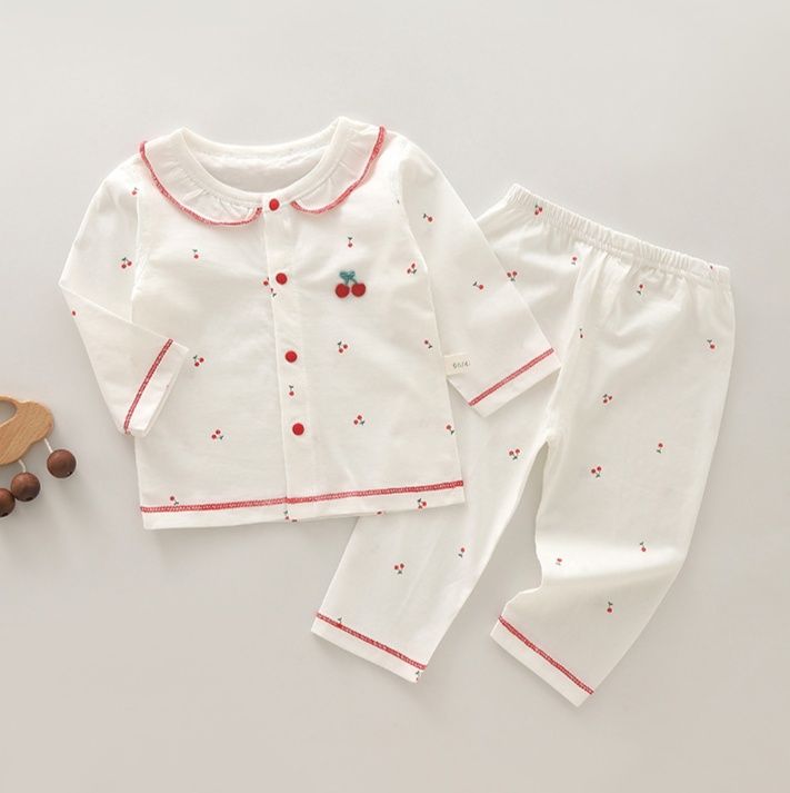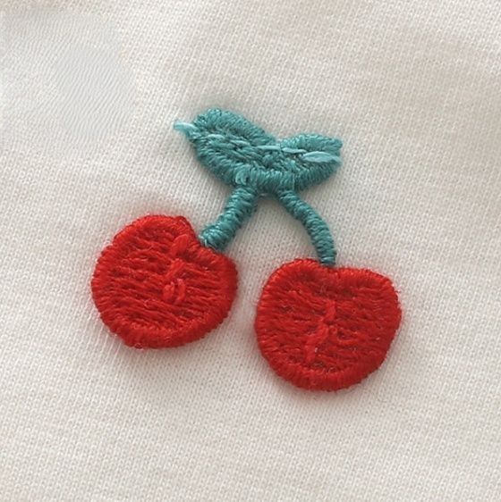 可愛らしいさくらんぼの刺繍が全体に散りばめられた女児パジャマです。