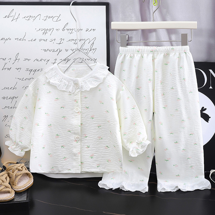 可愛らしい小花柄が全体に散りばめられた女児パジャマの上下セットです。