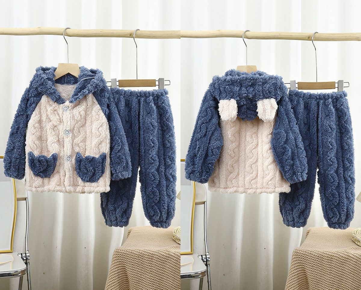 保温性に優れた厚手の生地で寒い季節も快適に過ごせる子どもパジャマです。